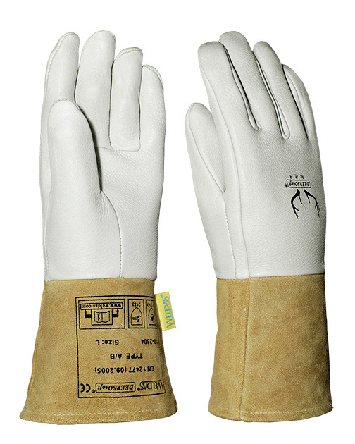 專為氬弧焊TIG焊接而設(shè)計,選用極具柔韌性、防火及隔熱的專用皮料。不同長度的袖筒,提供多種需求的隔熱性能。采用白色鹿青皮和牛二層皮袖制成,用KEVLAR防火線縫制,時尚高檔,是一款經(jīng)CE認(rèn)證的產(chǎn)品。