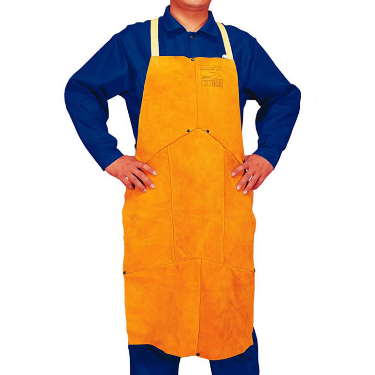 由耐用、柔韌的牛二層金黃色頸皮制成,具耐磨、隔熱和抗火性能。此圍裙為護(hù)胸圍裙,圍裙前胸配有口袋,是一款經(jīng)CE認(rèn)證的產(chǎn)品,操作靈活輕便,受廣大焊工愛戴。